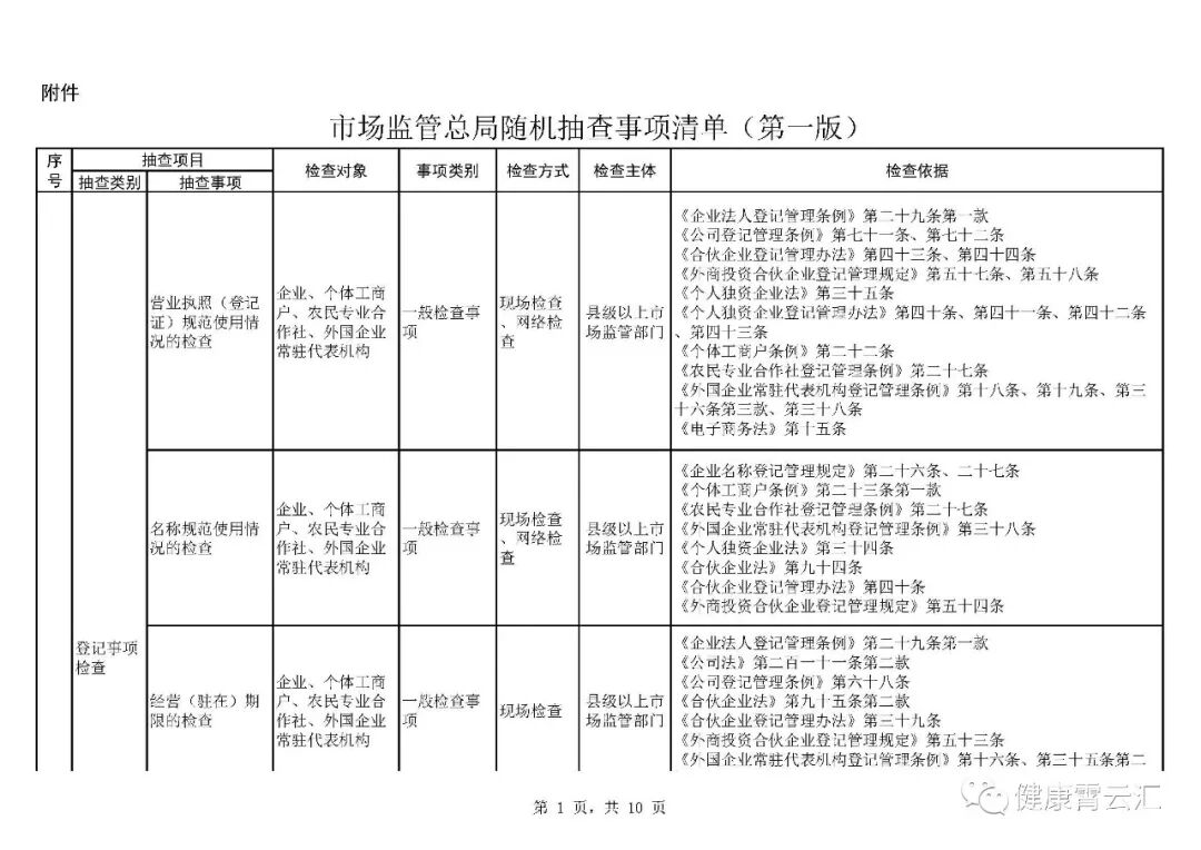 附件:市场监管总局随机抽查事项清单(第一版)