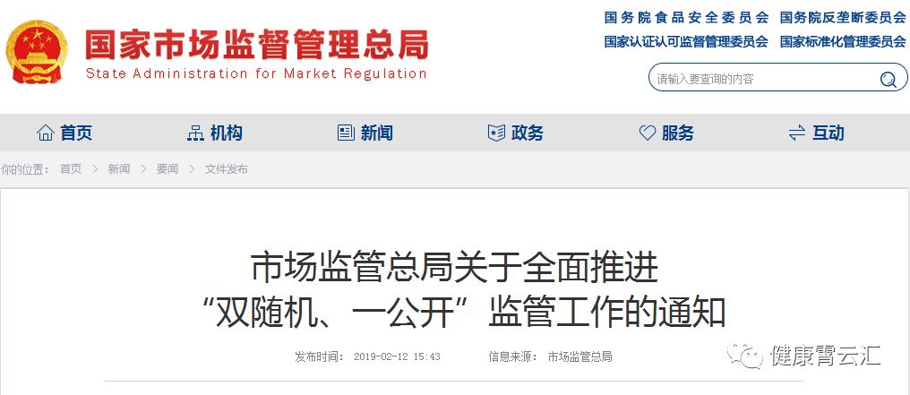 “双随机、一公开”监管是党中央、国务院作出的重大决策部署。近年来,各级市场监管部门严格落实《国务院办公厅关于推广随机抽查规范事中事后监管的通知》(国办发〔2015〕58号),积极推进“双随机、一公开”监管,取得了良好效果。为全面推进市场监管部门“双随机、一公开”监管工作,加强抽查的统一化、制度化、规范化,有效支撑事中事后监管,按照《国务院关于在市场监管领域全面推行部门联合“双随机、一公开”监管的意见》(国发〔2019〕5号)要求,现就有关事项通知如下: