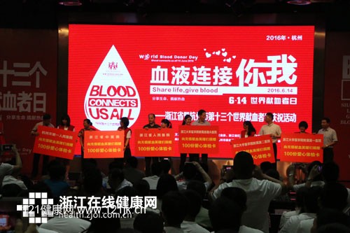 6月14日,是第13个世界献血者日,今年的主题是“血液连接你我”。11日上午,浙江省暨杭州市第十三个世界献血者日庆祝活动在浙江日报社举办,通过颂扬多次定期献血者的无私奉献之举,引起全社会对自愿无偿献血重要性的广泛认识。