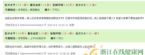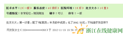 网友张女士的儿子朱先生在浙江省预约挂号平台“医生点评'栏目的留言 |