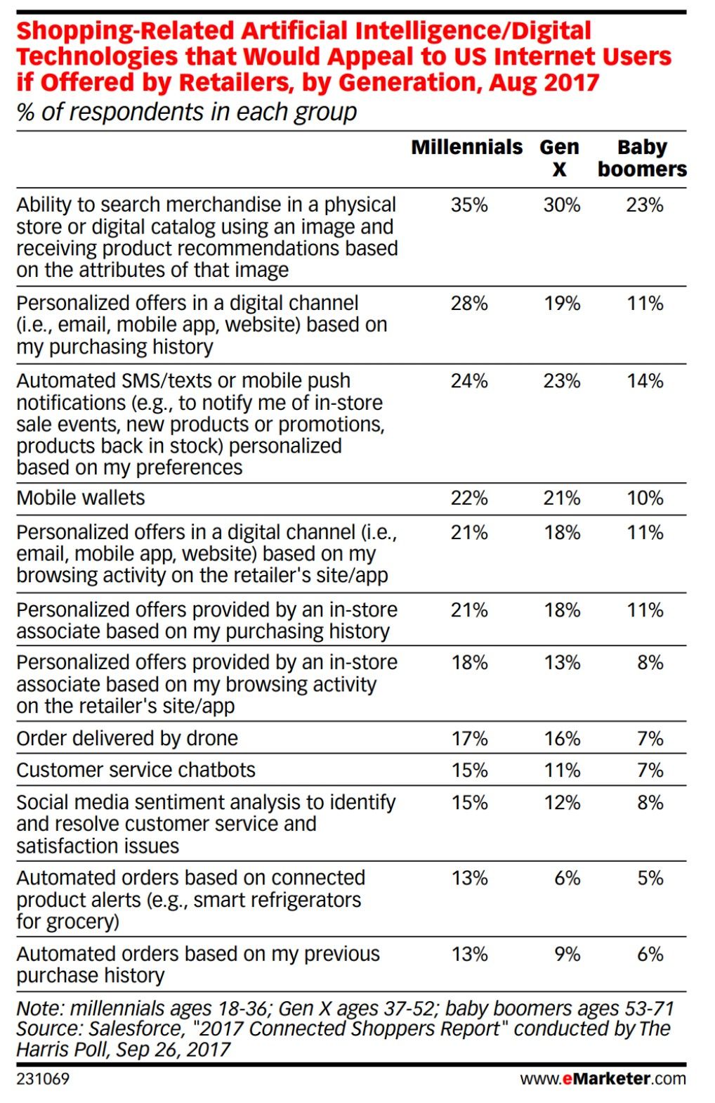 除此之外,对于虚拟语音助手、智能语音音箱这类将在未来购物和交流中扮演重要角色的工具,千禧一代消费者比婴儿潮一代更容易接受。