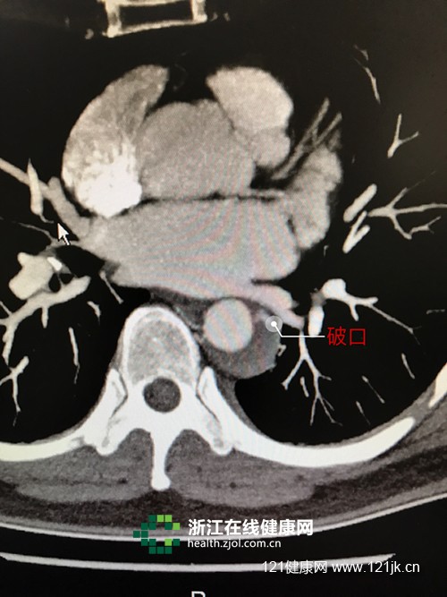 CT片显示主动脉内膜破裂口