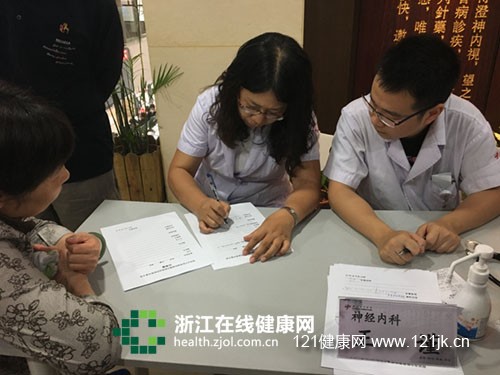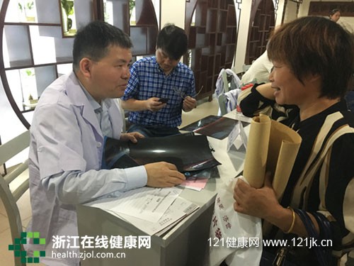 饱受荨麻疹困扰的汤阿姨排在队伍的第3个。她的老伴告诉记者,汤阿姨反反复复的荨麻疹已经成了全家人的一块心病,“这个风团发起来是很不好受的,医院跑了好几趟,也配了很多药,每次只要一停药就又发出来了。但是这个问题说大也不大,专程跑杭州大医院也满麻烦的,现在大医院的专家下来了,这个机会蛮好的。”