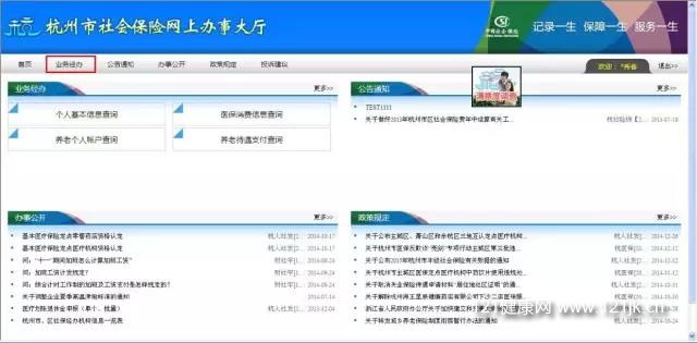 第一步:网上办事登陆网址:wsbs.zjhz.hrss.gov.cn,使用个人用户登录。用户名与密码需要社保办事窗口申请。在上方菜单中找到“业务经办”菜单,并点击进入业务经办页面;