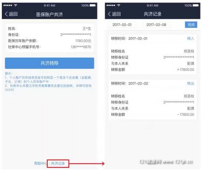 入口2:个人中心-》社保查询首页-》医保账户共济页
