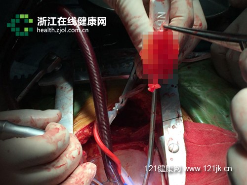 1月26日,谢女士被推进手术室。当晶莹剔透如水晶葡萄般的心脏粘液瘤被完整切除取出时,大家都倒吸了一口冷气。好大的一个心脏肿瘤,部分肿瘤已从瘤体半游离出来,靠一根辫子样组织连接,随时会脱落下来导致致命的栓塞。如果手术稍迟点做,后果不堪设想!
