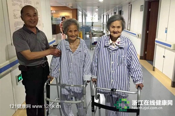 浙江在线健康网06月02日讯 (记者 柴燕宏 通讯员 阮芝芳 蒋明)一头整齐的银发,一身蓝白相间的衣服,两位年近百岁的老太太拄着助步器,在病房的走廊上一步步走着,就像是一对“双胞胎姐妹”。