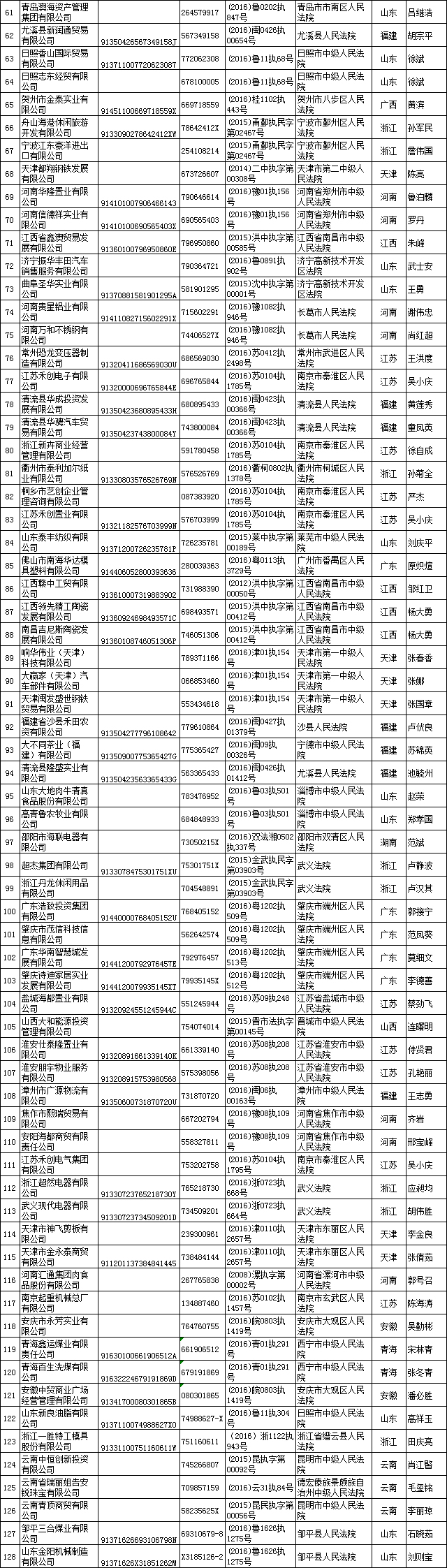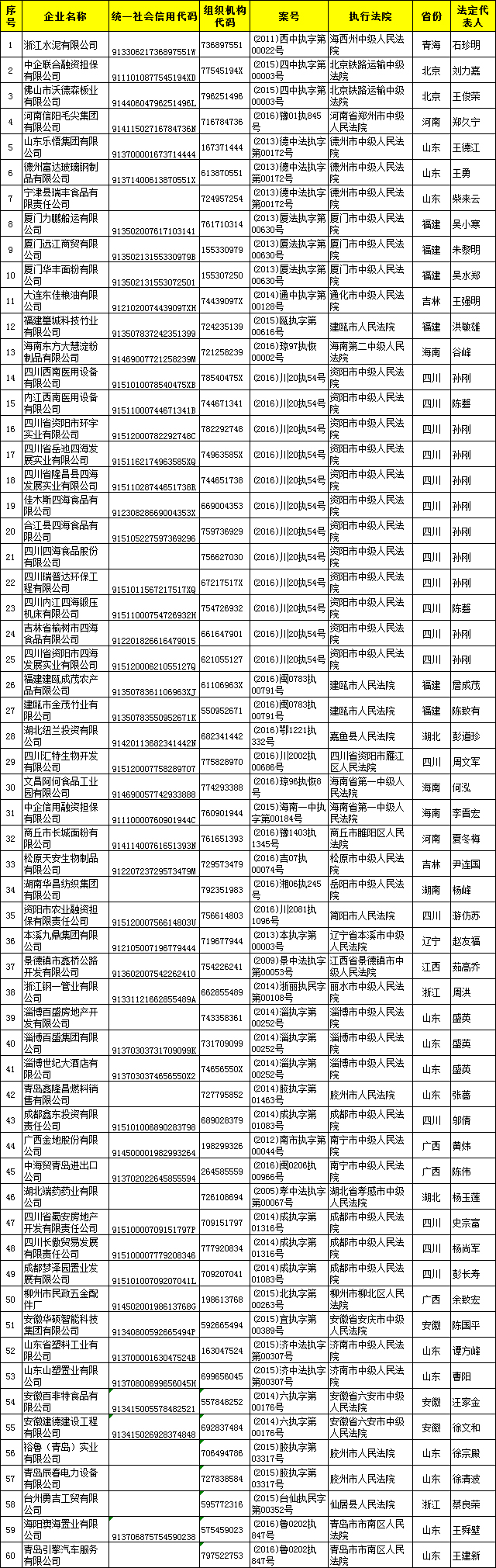 一、严重失信债务人名单