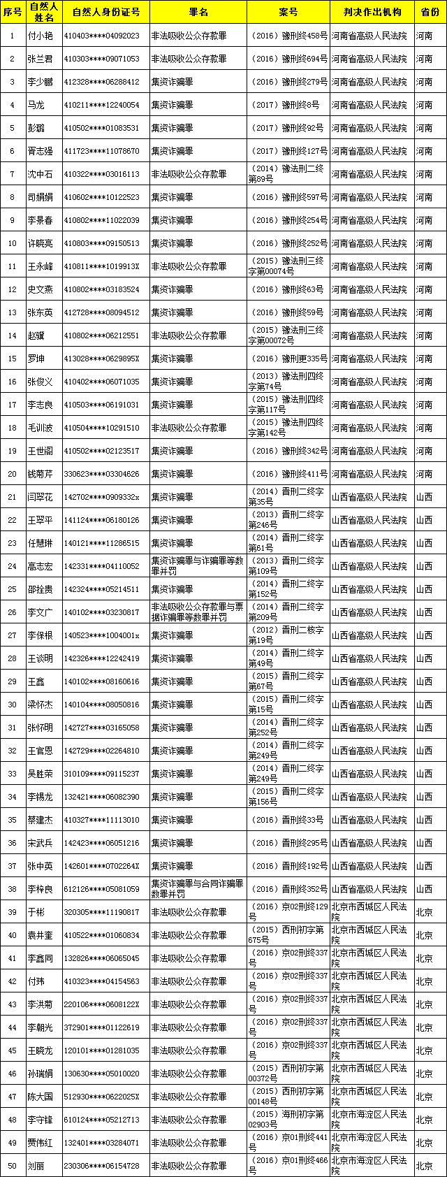 非法集资名单(自然人)