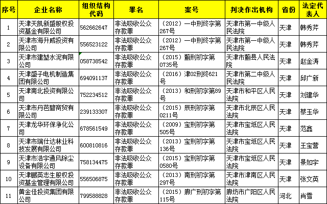 二、非法集资名单(企业)