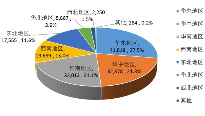 合成毒品滥用有较强的地域特点,以华东地区最多,其次是华中和华南地区;华东、华中和华南三个地区的合成毒品报告人数占全部合成毒品人群的69.9%,显示这三个地区是我国合成毒品滥用比较严重的地区。