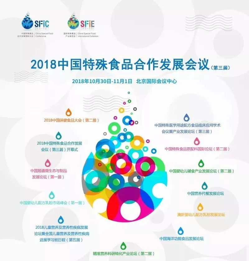 10月30日-11月1日,由中国营养保健食品协会主办的2018中国特殊食品合作发展国际大会(第三届)暨2018国际特殊食品产业展览会将在北京举行。