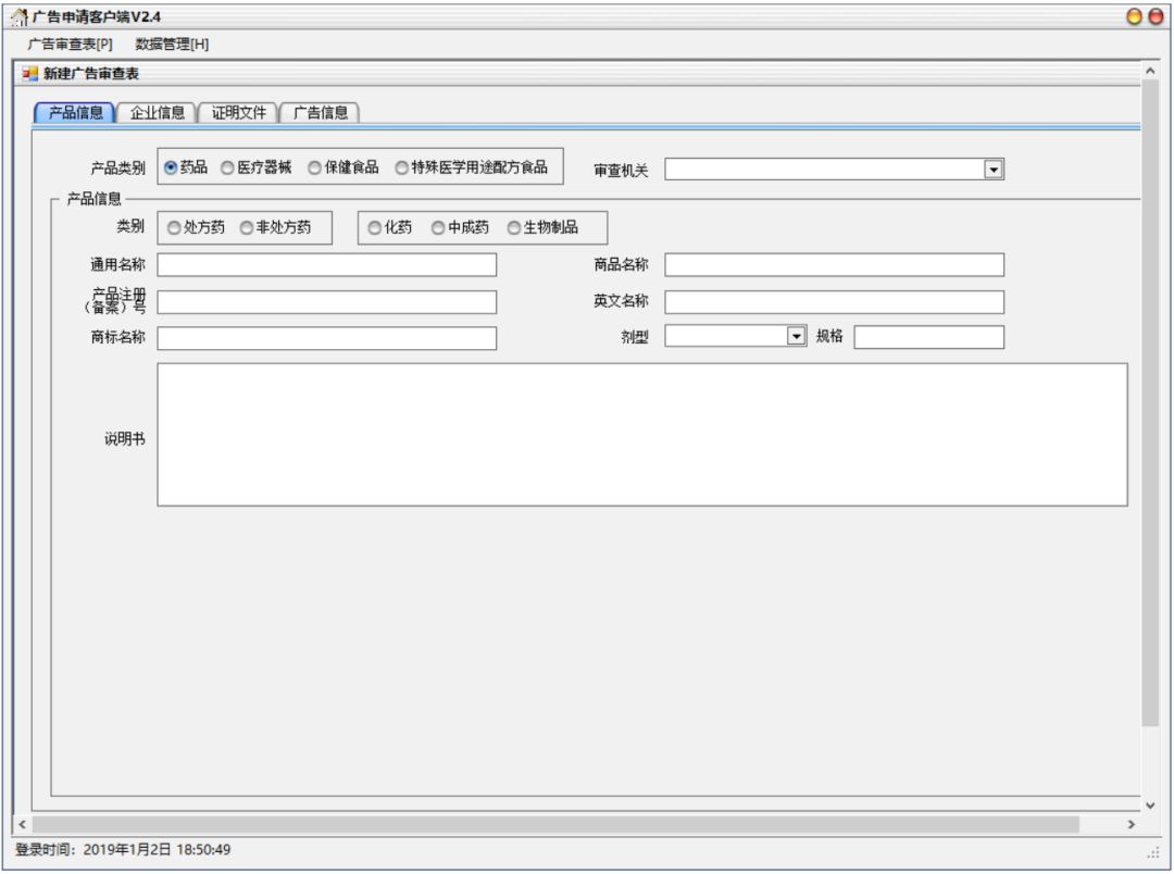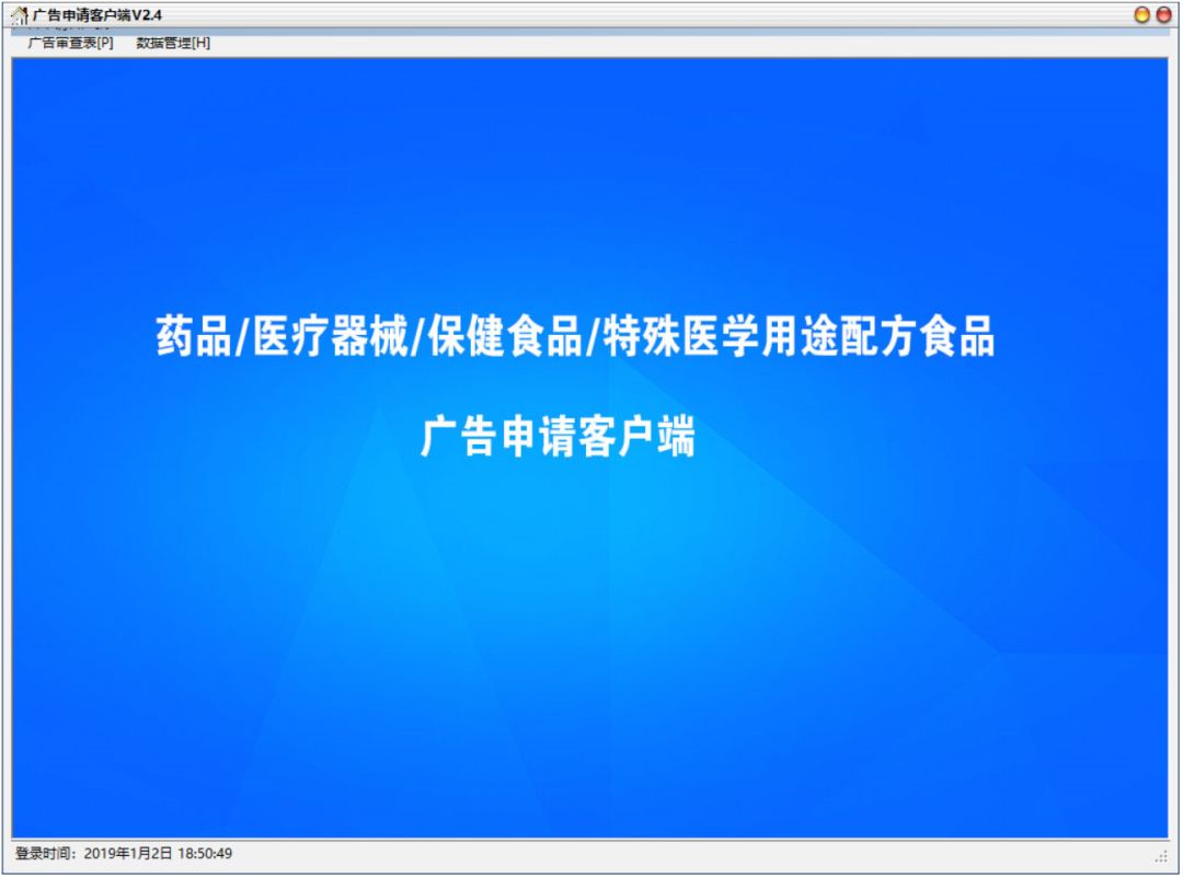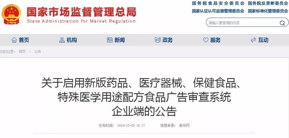 新版药品、医疗器械、保健食品、特殊医学用途配方食品广告审查系统企业端(安装程序见附件)将于2019年1月1日启用。自2019年1月1日起,广告申请人请使用新版企业端填报相关广告审查申请材料。