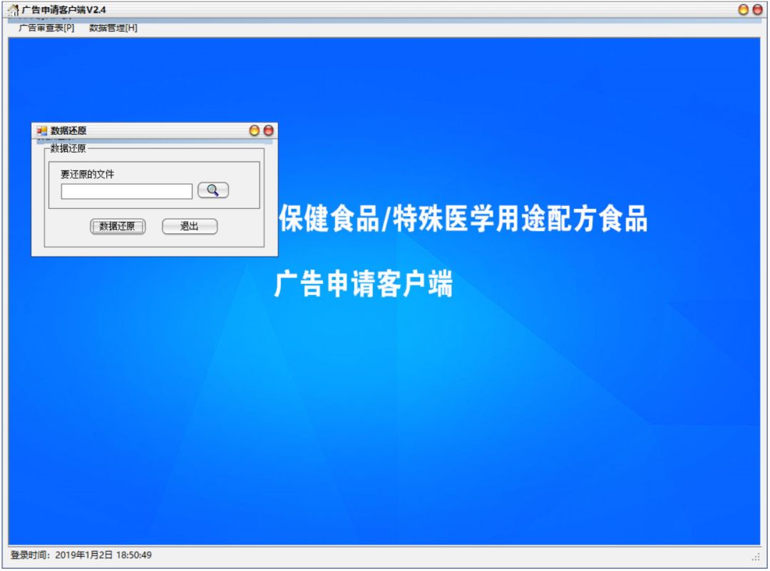 以下为新版广告审查系统企业端V2.4运行界面,点击“阅读原文”下载程序。