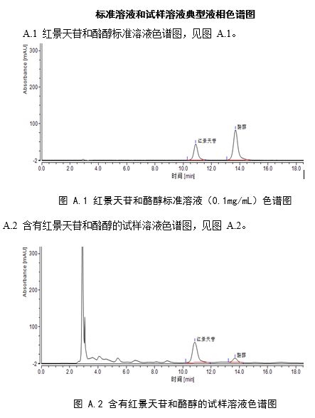 5.2.7 系统适用性试验:取系统适用性溶液(3.4.4)10 mL,注入液相色谱仪,记录色谱图,红景天苷峰与酪醇峰的分离度应大于1.5。