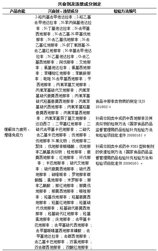8. 针对各类功效的保健食品,需参照本规范第四部分兴奋剂及违禁成分测定方法进行非法添加筛查。同时,需进行配方分析,如明确存在原料带入情况的指标,应检测相关项目,报出检测结果,但不作为非法添加结果报送,除结果异常外。
