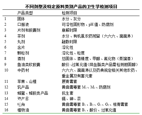 Hygienic Testing Items for Products with Different Dosage Formsand Specific Raw Materials