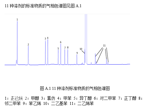 甲醇(CH4O)、正丁醇(CH3(CH2)3OH)、异丁醇(CH3CH(CH3)CH2OH)、氯仿(CHCl3)、正己烷(C6H14)、甲苯(C7H8)、对二甲苯(C8H10)、邻二甲苯(C8H10)、苯乙烯(C8H8)、1,2-二乙基苯(C10H14)和二乙烯苯(C10H10)标准品:纯度≥97.0%。