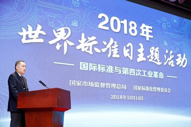 10月14日,2018年世界标准日主题活动在京举行。市场监管总局局长张茅出席活动并讲话。市场监管总局副局长、国家标准委主任田世宏,工业和信息化部副部长罗文致辞。国际电工委员会(IEC) 副主席舒印彪宣读世界标准日祝词。中国工程院秘书长陈建峰院士、中国电子技术标准化研究院院长赵波作主旨发言。