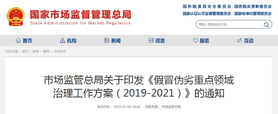 假冒伪劣重点领域治理工作方案(2019-2021)