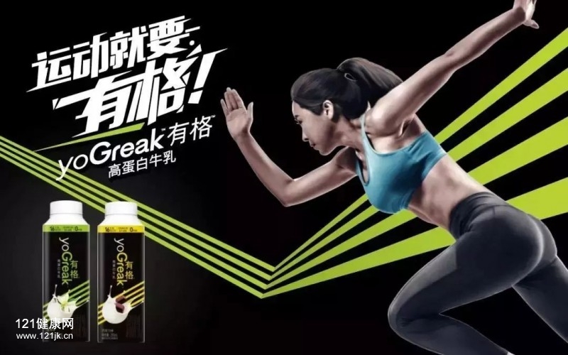 乳品大拿之一的光明乳业在推出主打三倍蛋白、零脂肪的希腊式酸奶yoGreek后,在去年全民健身日发布了yoGreak有格高蛋白牛乳,富含16g优质蛋白,并添加了维生素与牛磺酸等多重元素,能迅速帮助运动后体能的恢复,满足身体的补给。