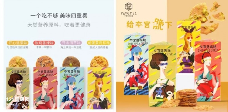 初创品牌本宫PavoMea切入零食消费升级赛道,推出爆款零食本宫の鹰嘴脆,将当红食材鹰嘴豆作为核心原料,制成咸口脆片,高蛋白高纤维,采用艺术家设计包装,用差异性产品快速占领消费者心智。