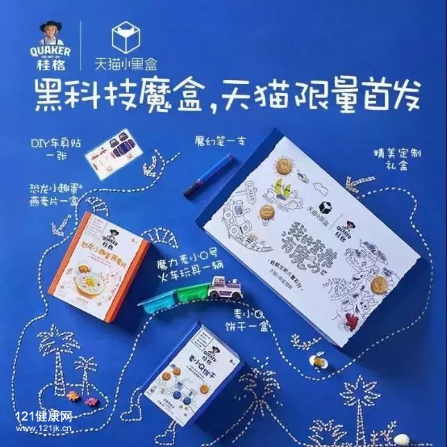 桂格黑科技魔盒中将恐龙小趣蛋燕麦片与麦小Q饼干搭配在一起,恐龙小趣蛋燕麦片中藏有的小趣蛋遇水融化,小恐龙破蛋而出,小朋友可参与“找恐龙小游戏”,而麦小Q饼干专注于小朋友的“小饿时刻”,营养丰富,每块饼干上有不同的小表情,装在“小火车”里,帮助平衡膳食的同时,玩趣盎然。