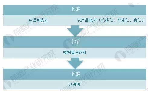 植物蛋白饮料行业上下游供应链模式明显,上游供应商主要有两类,一类是提供核桃仁、花生仁、杏仁等原材料的农产品批发企业;另一类是提供产品包装物如易拉罐等的金属包装容器制造行业。