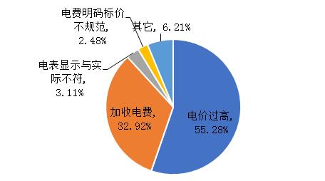 从受理问题的内容上看,投诉举报主要反映物业、供电公司电价过高(例如:市民反映其所在的物业公司不按照国家现行规定的商业用电标准下调电价)、加收电费、电表显示与实际不符、电费明码标价不规范等问题。咨询主要咨询转供电费用政策、物业、供电公司电价收取标准、收费合理性等问题。