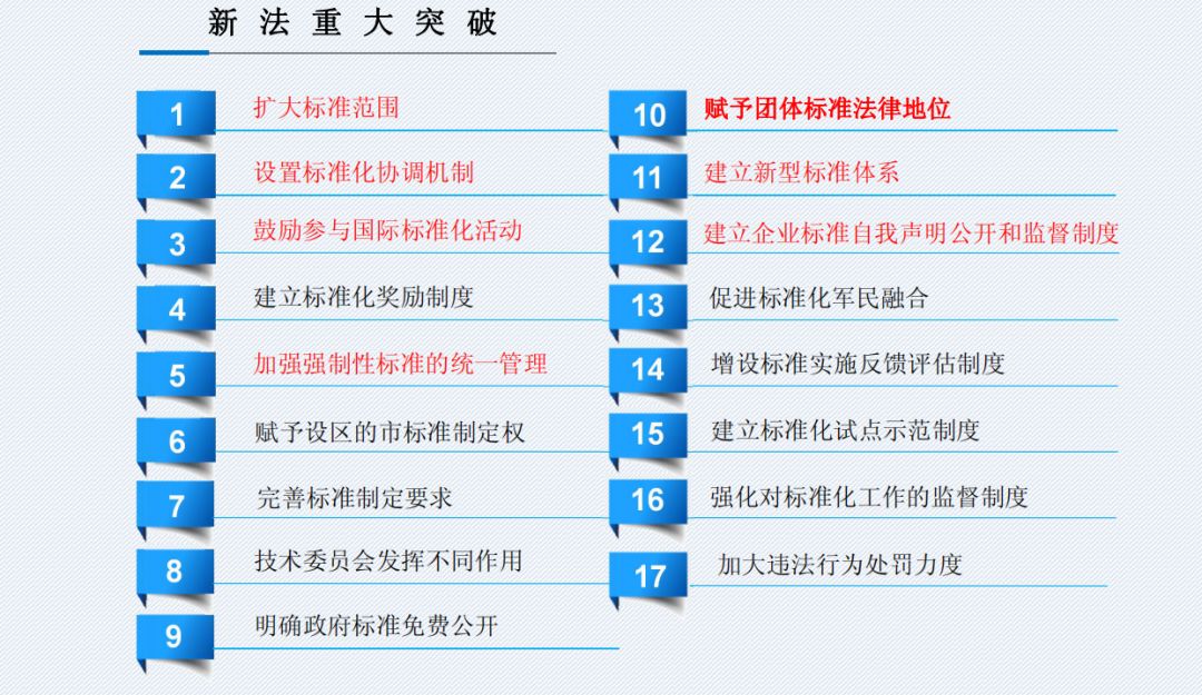 2017年11月4日,第十二届全国人民代表大会常务委员会第三十次会议修订《中华人民共和国标准化法》自2018年1月1日起施行。